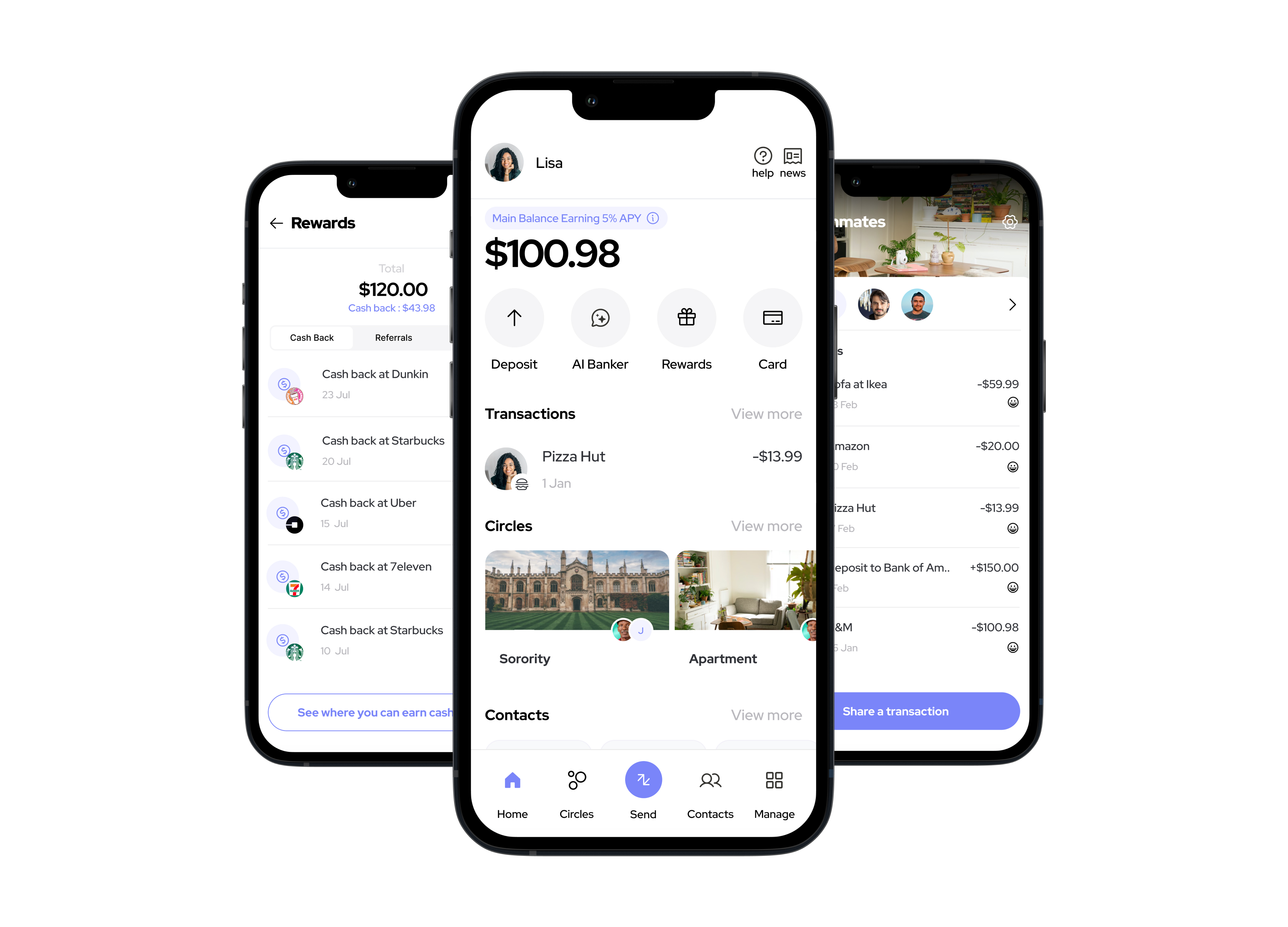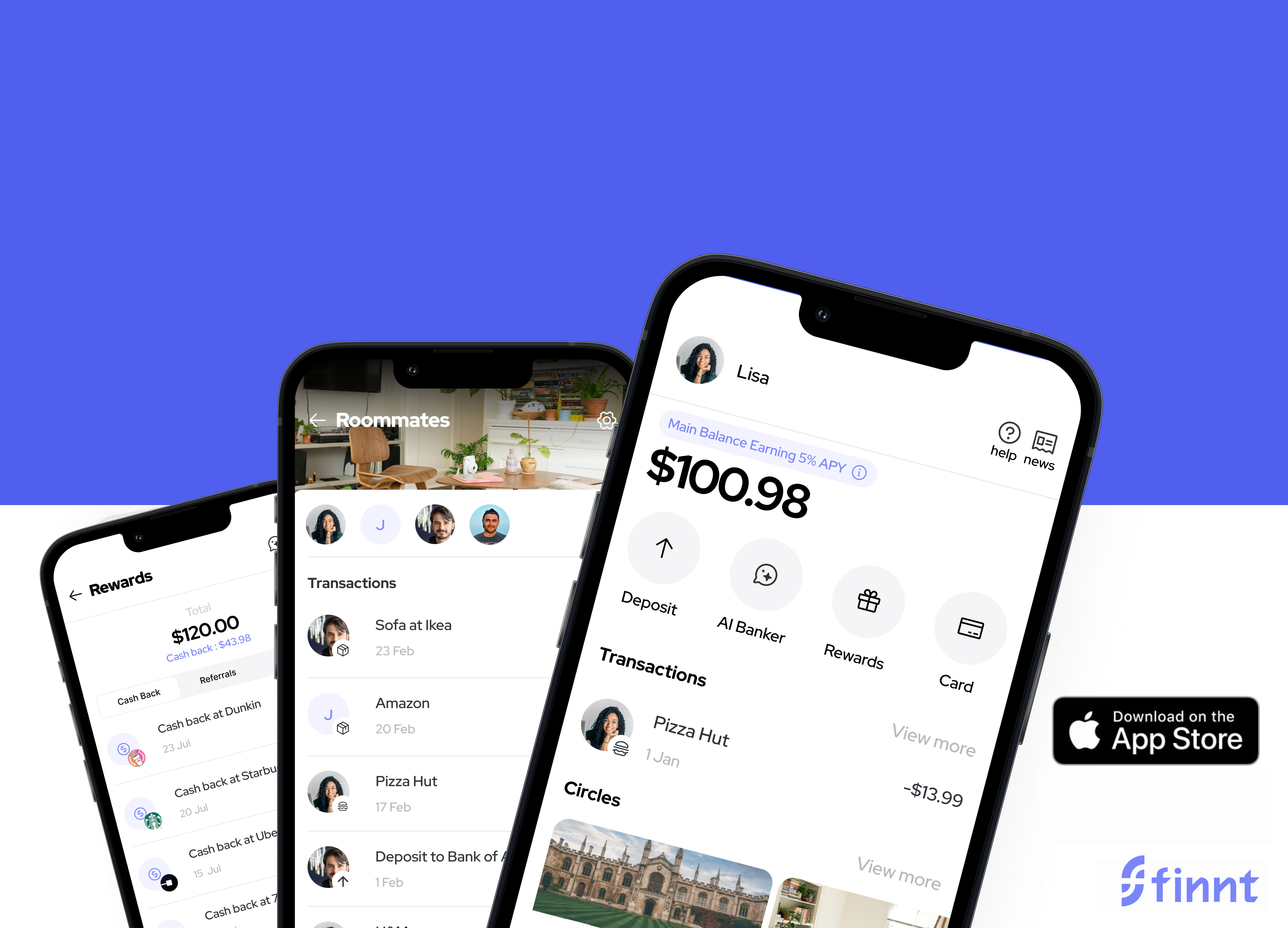 Finnt is a banking application designed to help American students better manage and transfer their money, particularly in the context of student associations and shared accommodation.