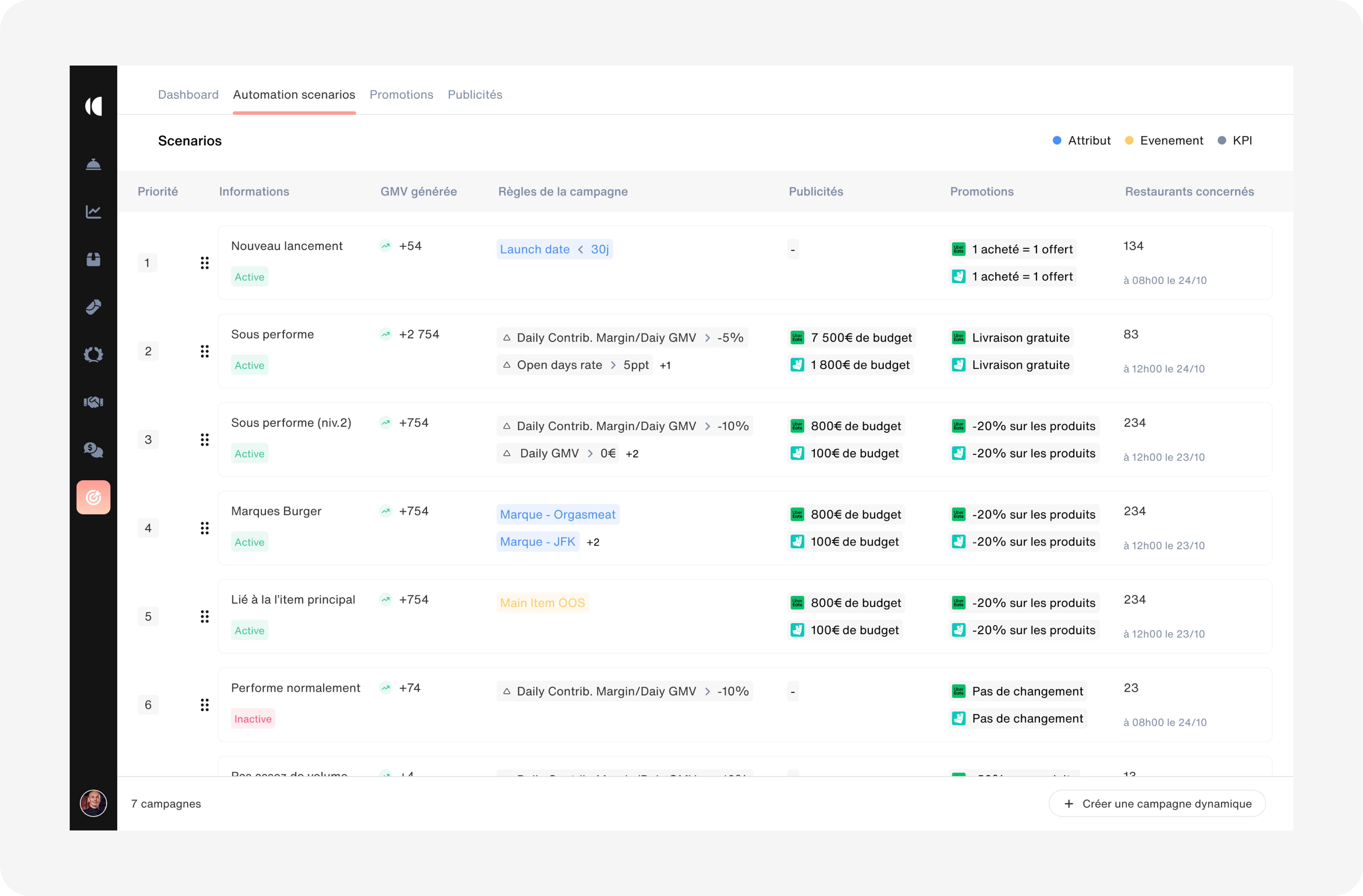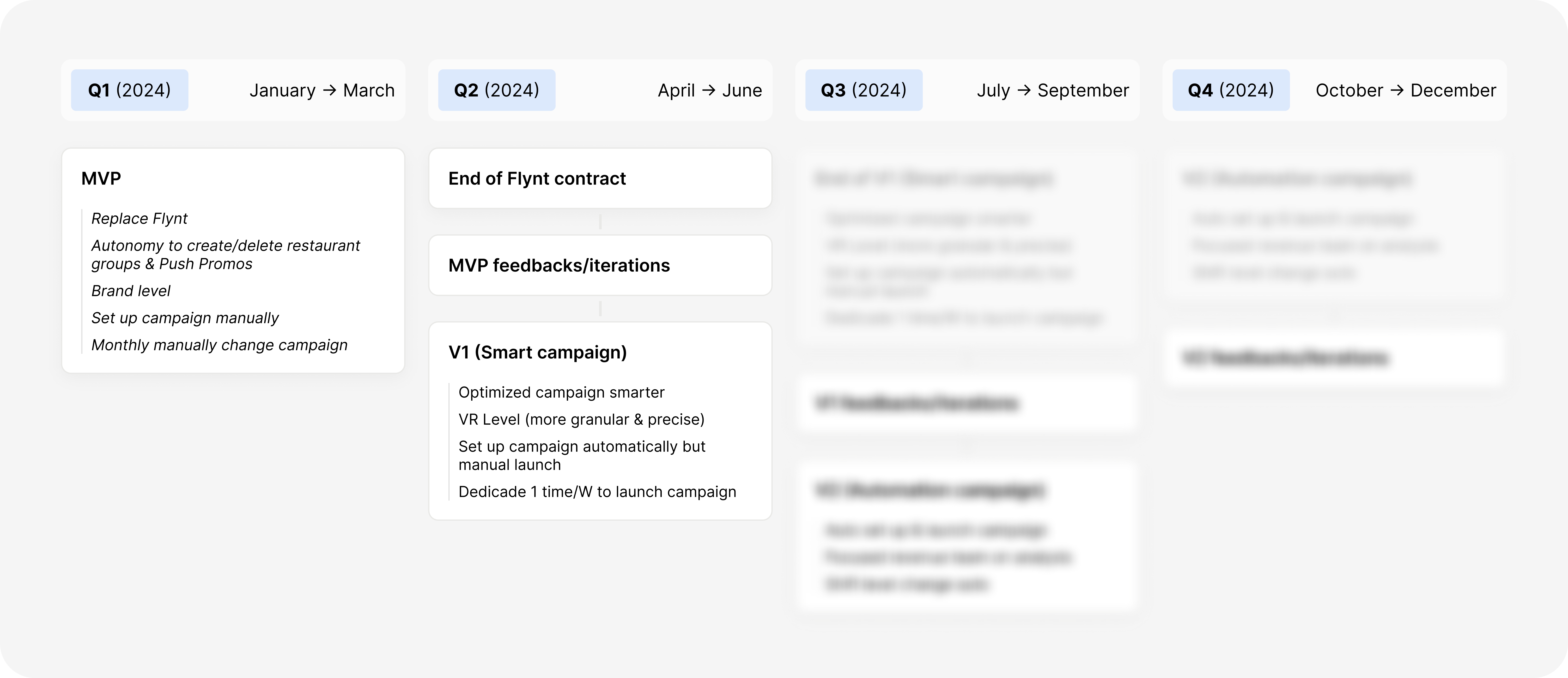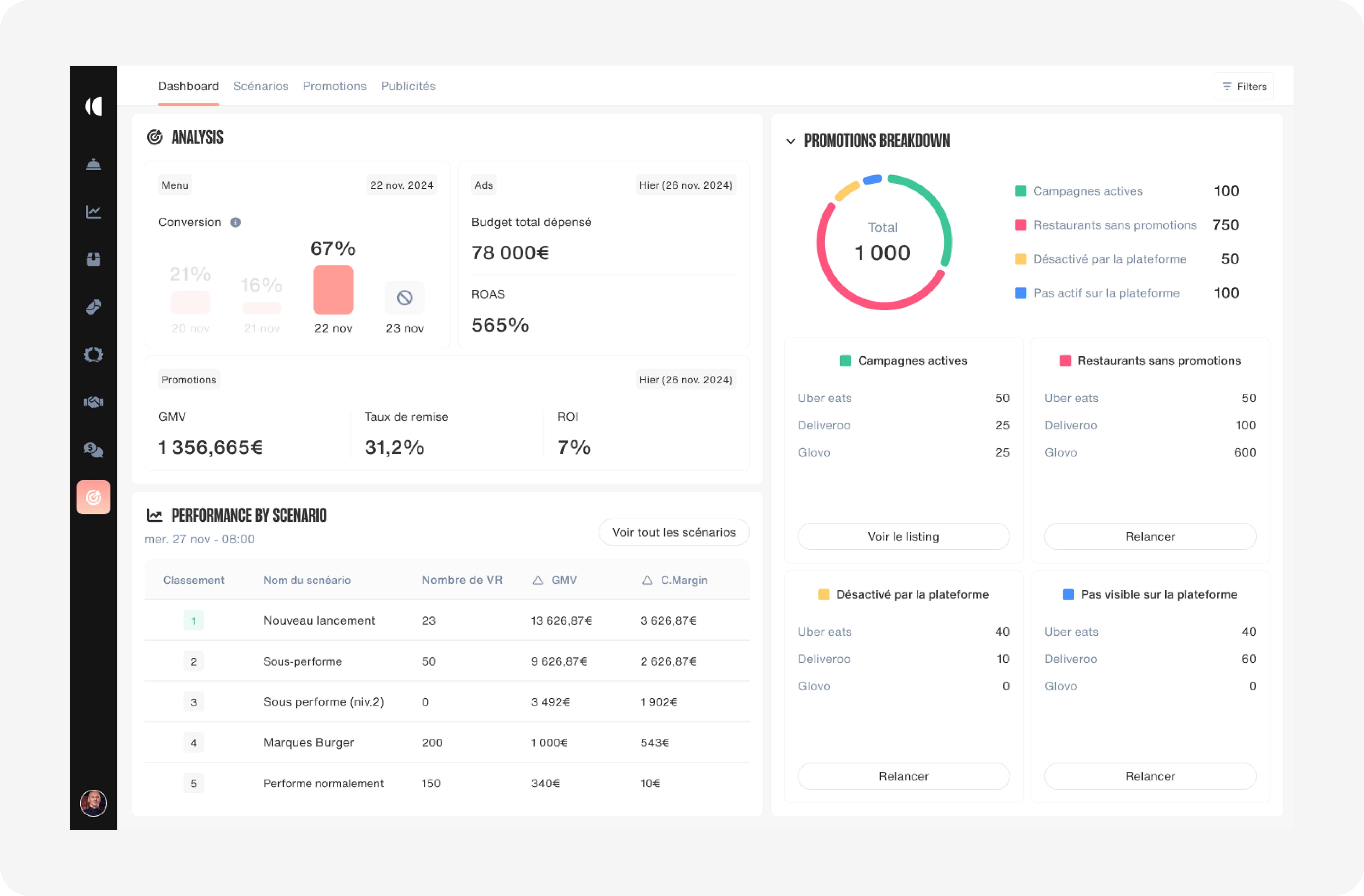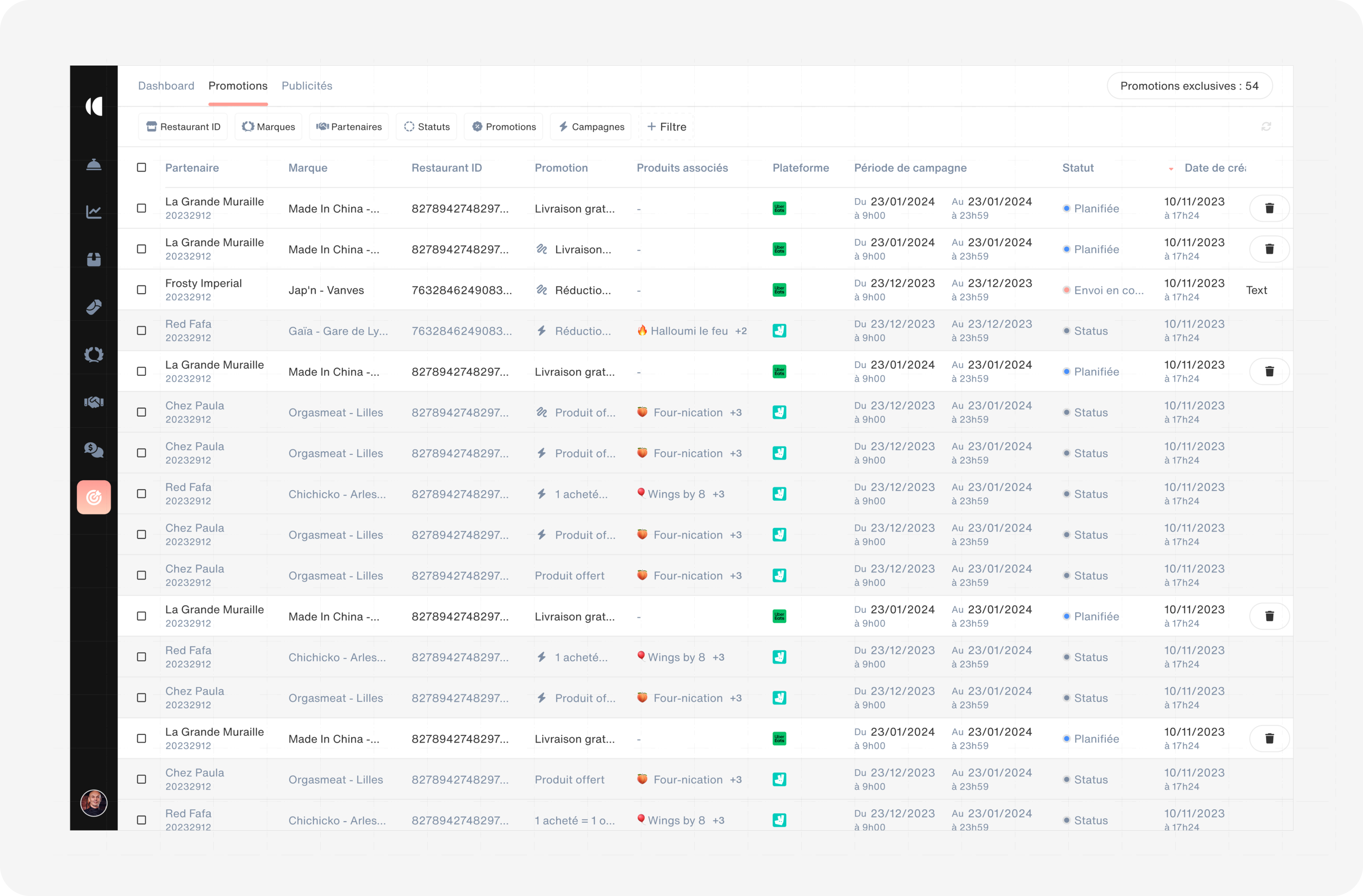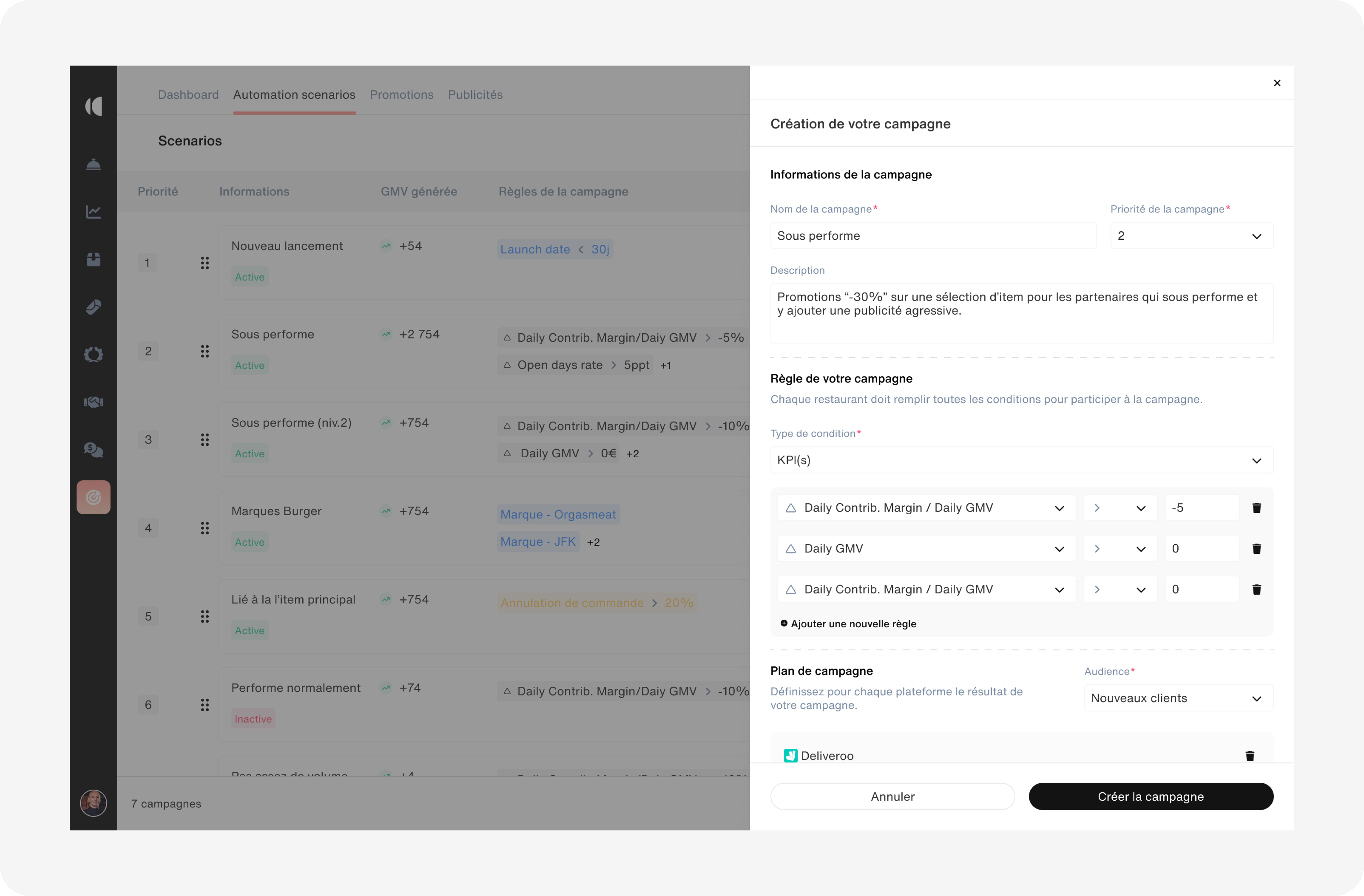 At Clone, as a Product Designer, I worked on a project to completely rethink the management of marketing campaigns for our virtual restaurants on Uber Eats and Deliveroo. Until now, these campaigns—whether promotions or advertisements—were managed through external tools like Flynt and Google Sheets.