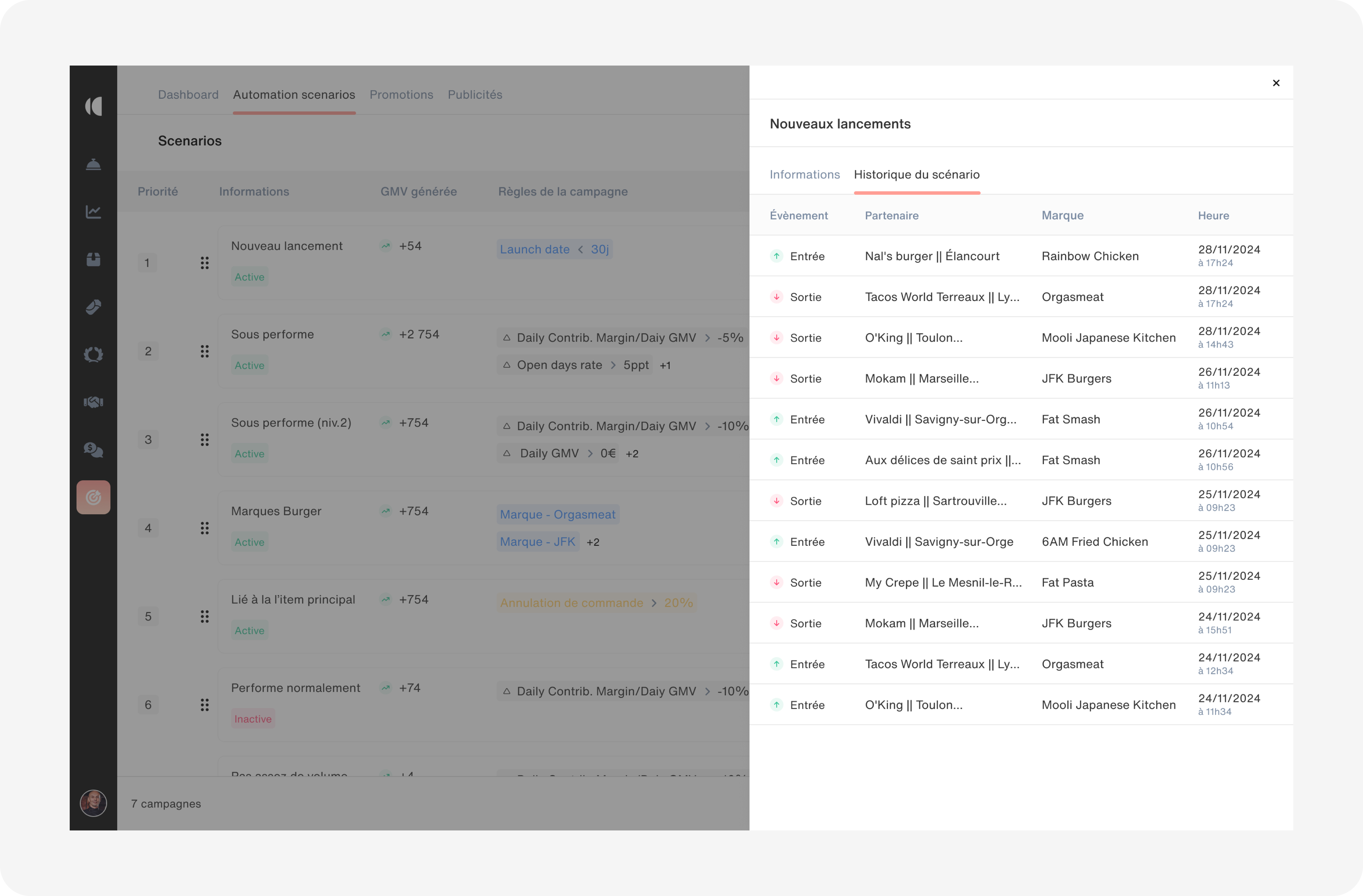In order to know if the scenario was working, we quickly implemented a history feature that tracks whether partners entered and exited the scenario. This allowed us to validate the technical side of the feature.