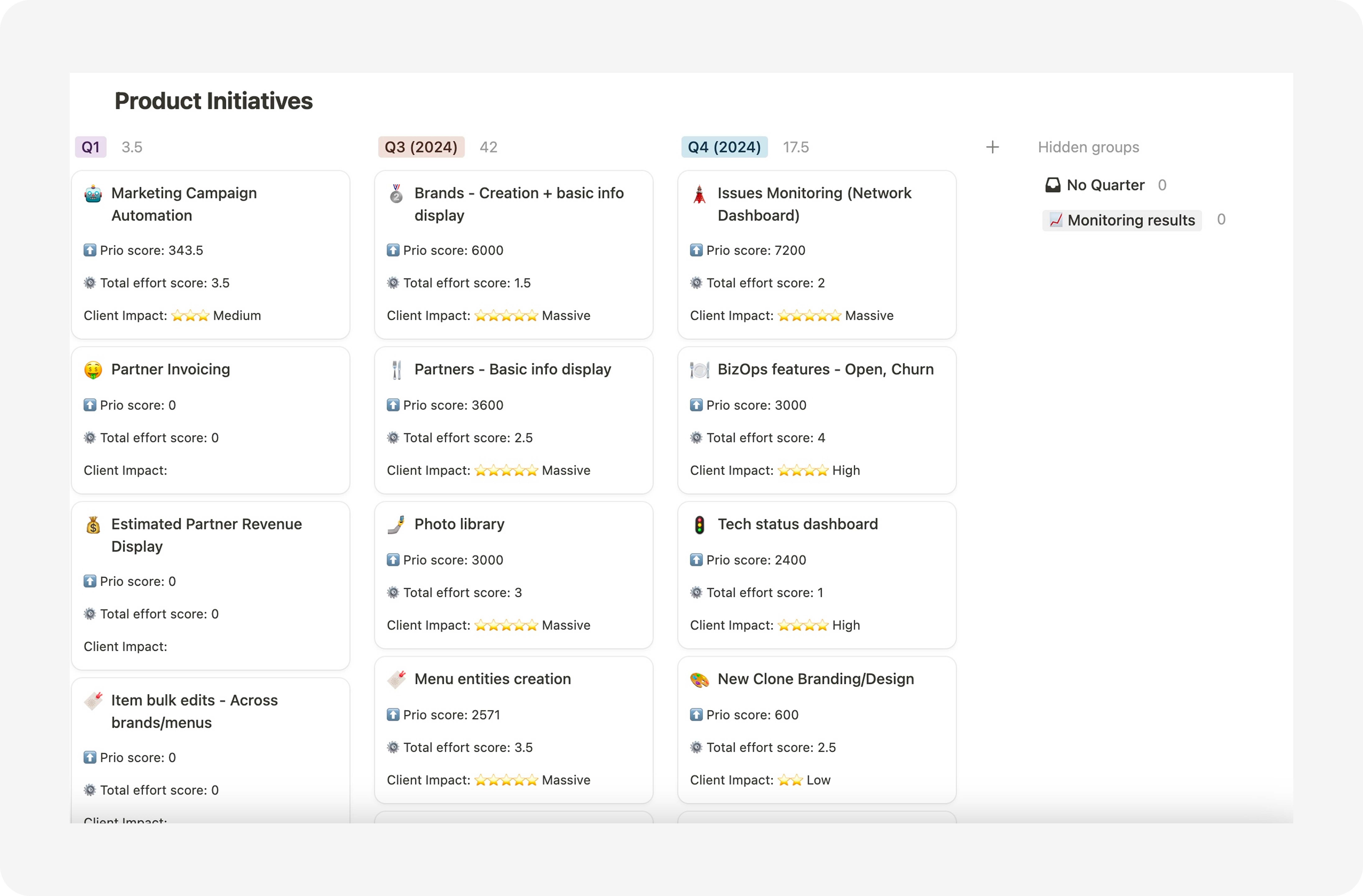 We used the RICE method to prioritize features across each project. It’s a method developed by Intercom.