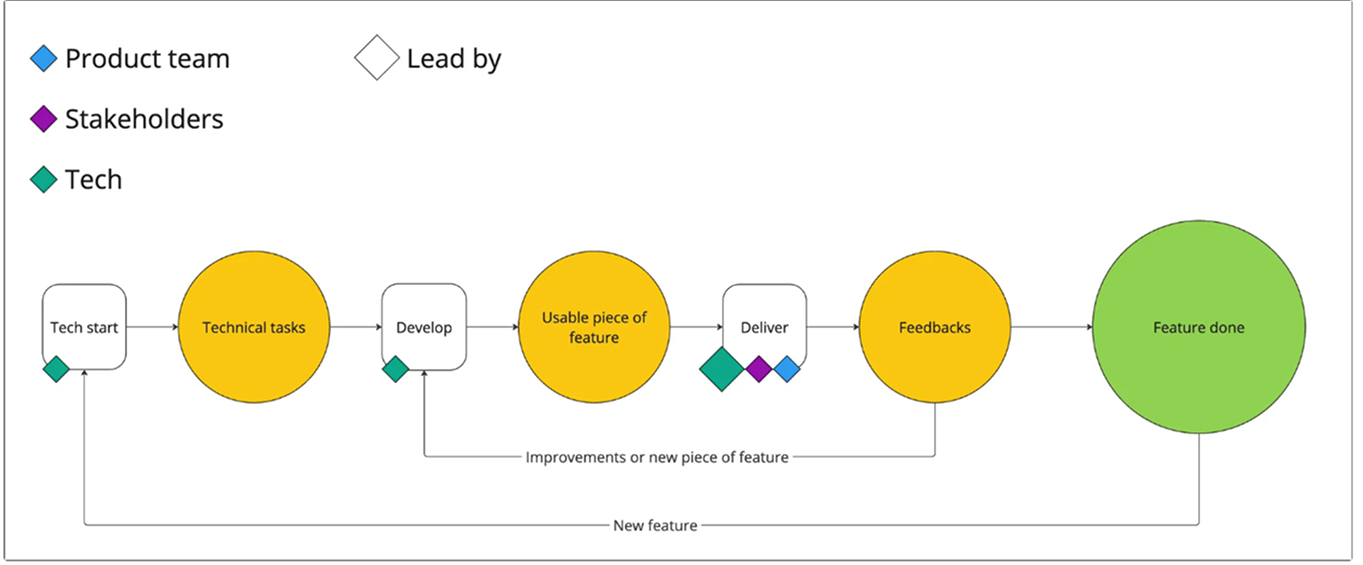 Technical scoping & Iterative development→ Defining technical tasks, developing initial functional versions and continuously improving based on feedback.