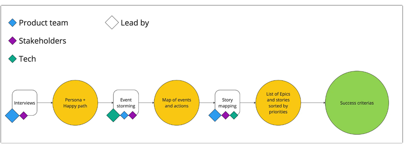 Event Storming & User Story Mapping→ Mapping out processes and user flows to align teams on the expected functionalities.